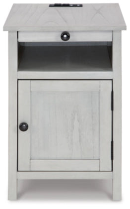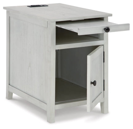This compact end table makes a big impact in small spaces. With its shaker-inspired design and clean lines, the Treytown chair side table offers a timeless, understated look. It displays accent pieces and stores essentials while also keeping devices powered up.